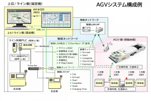 AGVとPLC通信(無線Ethernet):工場無線LAN経由でEtherNet/IP等によりPLCデータを送受信。